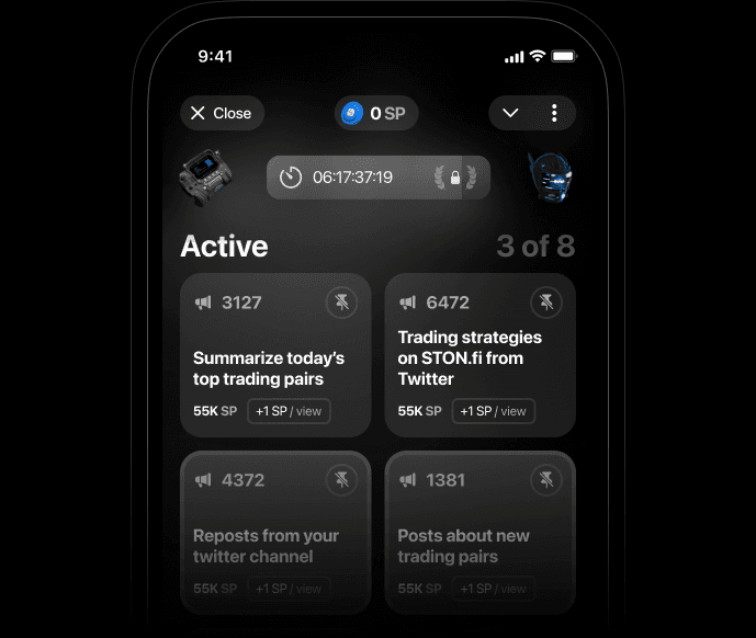 Members complete tasks and quizzes to learn and earn STON points and other rewards.